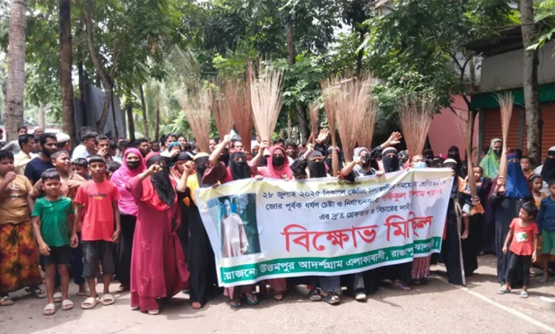 যৌন নিপীড়নের ঘটনায় মাদরাসা শিক্ষককে গ্রেফতারের দাবিতে ঝাড়ু মিছিল