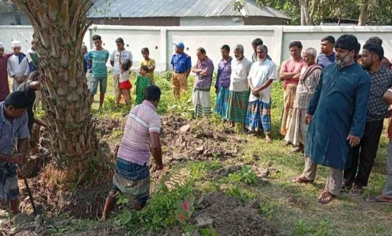 মঙ্গলবার (১১ নভেম্বর) দুপুরে জেলা প্রশাসনের নির্বাহী ম্যাজিস্ট্রেটের উপস্থিতিতে উপজেলার সর্বানন্দ ইউনিয়নের রামভদ্র খানাবাড়ি গ্রামে এ লাশ তোলা হয়।