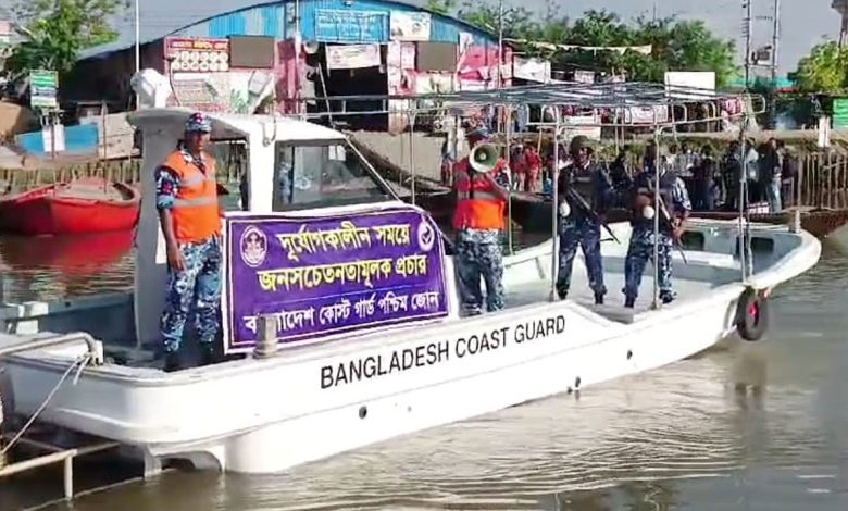 ঘূর্ণিঝড় রেমাল সতর্কতায় বাগেরহাটে কোস্ট গার্ডের মাইকিং