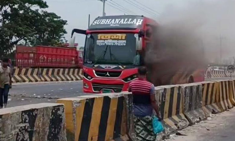 সোনারগাঁয়ে যাত্রীবাহী বাসে আগুন