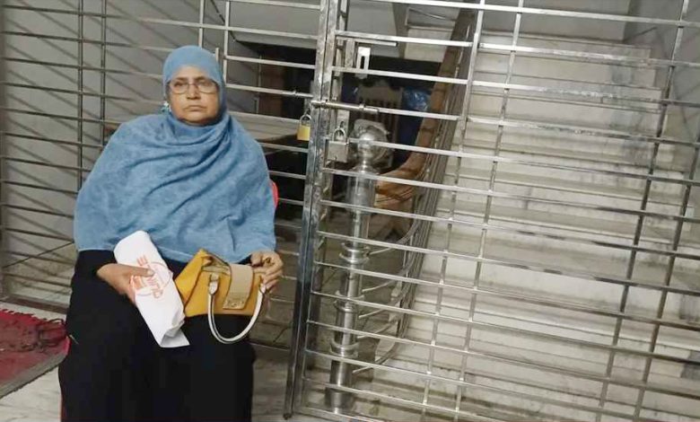 সোমবার (১৪ জুলাই) নওগাঁ শহরের কাজীর মোড় এলাকায় এ ঘটনাটি ঘটেছে। মা যাতে ঘরে ঢুকতে না পারেন, সে জন্য তিনি বাড়ির সিঁড়িতে লোহার ফটকে দিয়েছেন তালা। সেখানে বসে আছেন ওই মা। কিন্তু মন গলছে না ছেলের। বাড়িতে ঢুকতে না পেরে বাড়ির নিচতলায় দোতলায় ওঠার সিঁড়ির সামনে গ্যারেজে বসে রয়েছেন বিলকিস আক্তার। রাত আটটা ১৫ মিনিটের দিকেও ওই মা সেখানে বসেছিলেন।