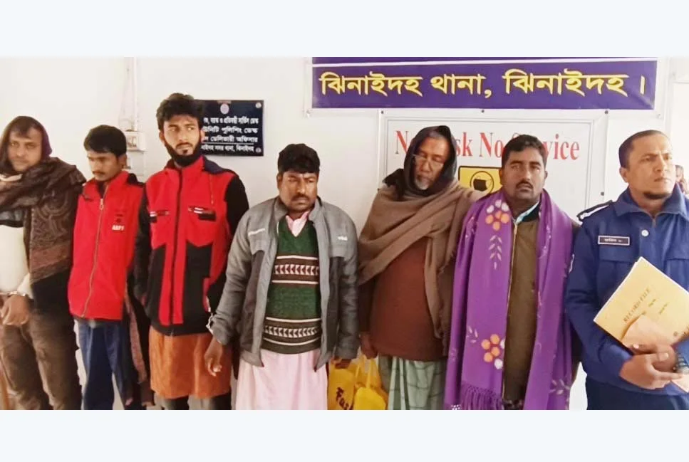 গ্রেফতারকৃতরা হলো ঝিনাইদহ শহরের হামদহ ঘোষপাড়ার কার্তিক ঘোষ ও তার ছেলে কল্লোল ঘোষ, কামাকুন্ডু এলাকার আলতাফ হোসেনের ছেলে সবুজ হোসেন, হামদহ এলাকার তফসের হোসেনের ছেলে আইয়ুুব আলী, ইসলাম পাড়ার ডাবলু মিয়ার ছেলে নয়ন মিয়া, ব্যাপারীপাড়ার মোজাম্মেল হকের ছেলে মুন্না ও রমজান আলীর ছেলে হাতকাটা তরুণ।