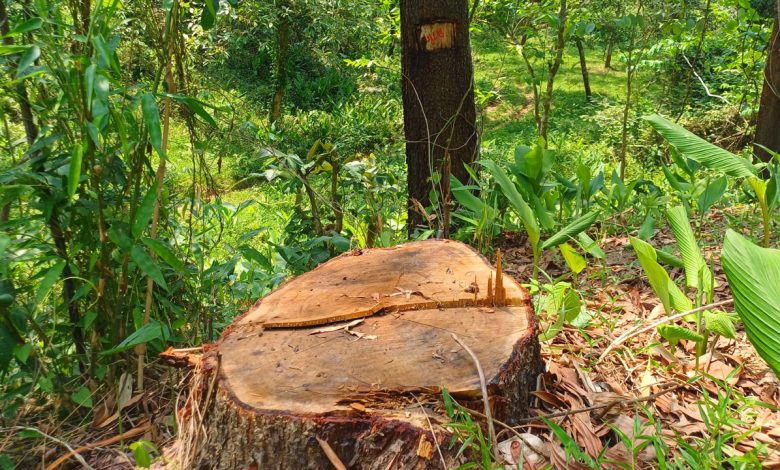 বনের গাছ কেটে নিচ্ছেন কর্মকর্তারা, বাধা দিলে মামলার হুমকি