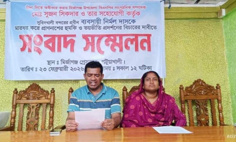 আজ সোমবার (২৩ ফেব্রুয়ারি) দুপুরে মির্জাগঞ্জ প্রেসক্লাবে আয়োজিত এক সংবাদ সম্মেলনে ভুক্তভোগী ব্যবসায়ী এই অভিযোগ করেন।
