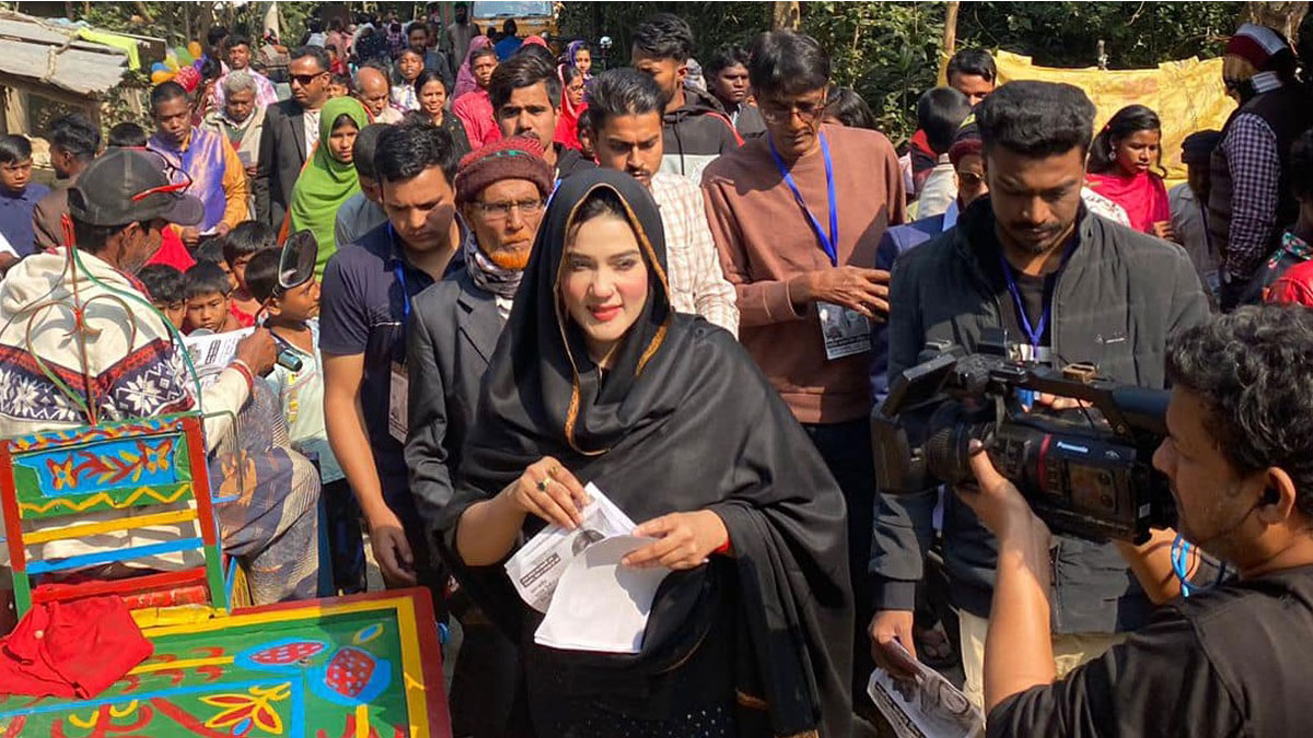 এরপর সেখানকার ভোটারদের উদ্দেশে এই নায়িকা বলেন, ‘নির্বাচনে জয়ী হলে আমার প্রথম কাজ হবে আপনাদের পানি নিয়ে কাজ করা, সড়ক নিয়ে কাজ করা। আমি চেষ্টা করব, আপনাদের পানির ব্যবস্থা করে দেওয়া ও সড়ক ঠিক করে দেওয়া।’