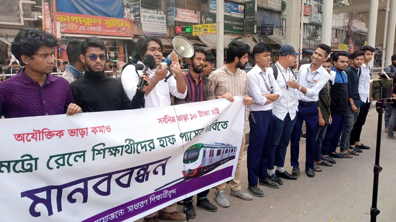 এর আগে, মেট্রোরেলে হাফপাসের দাবিতে কর্মসূচি ঘোষণা করেছিল শিক্ষার্থীরা। দাবি আদায়ে ফার্মগেট এলাকায় বড় জমায়েতের ডাক দিয়েছিল তারা। কর্মসূচি সফল করতে অনলাইন ও অফলাইনে সমানভাবে প্রচার-প্রচারণাও চালানো হয়েছিল।