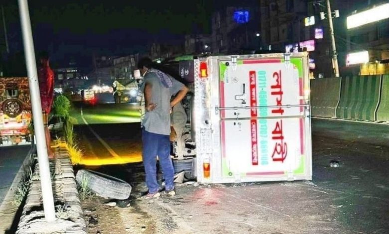 সড়কে উল্টে গেল মাইলস্টোন কলেজ শিক্ষার্থীর মরদেহবাহী ফ্রিজিং ভ্যান