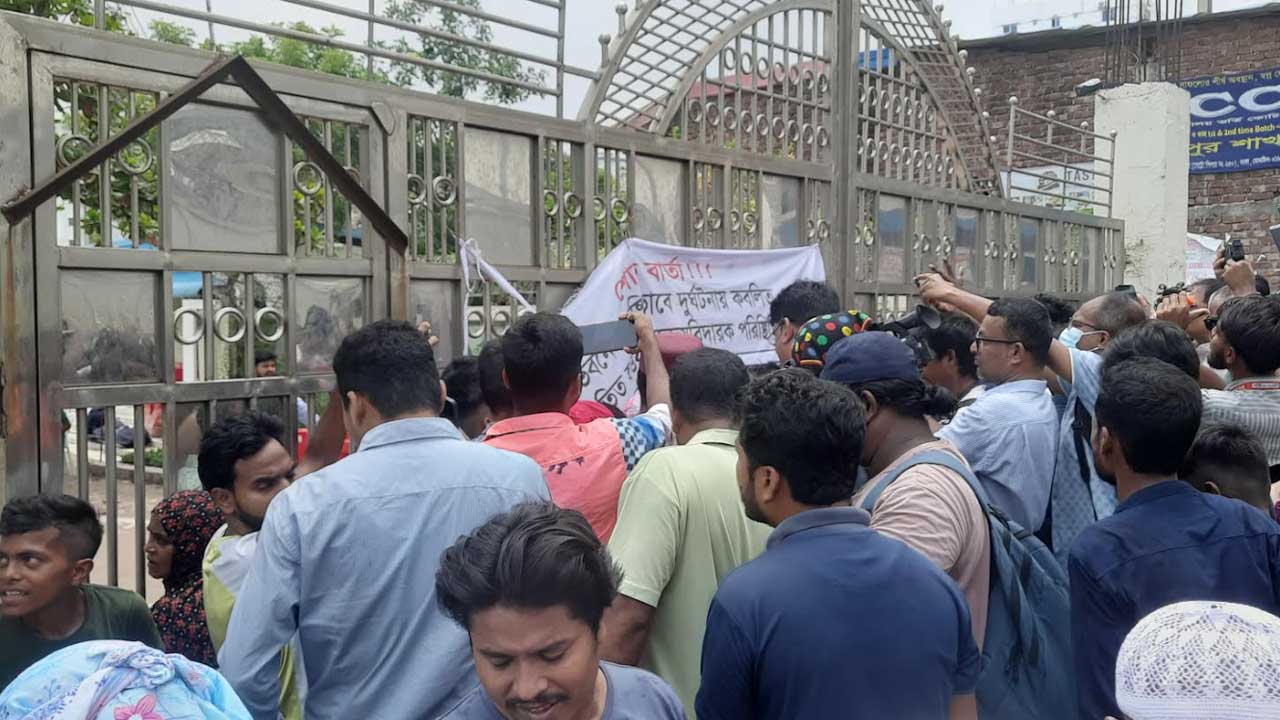 মাইলস্টোনের গেটে তালা, বাইরে উৎসুক জনতার ভিড়