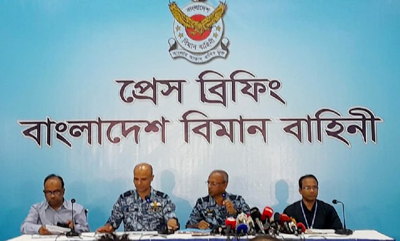 সংবাদ সম্মেলনে লিখিত বক্তব্য পাঠ করেন বিমান বাহিনীর জরুরি সমন্বয়ক কেন্দ্রের এয়ার কমডোর মো. মিজানুর রহমান। তিনি বলেন, ‘এই দুর্ঘটনায় নিহত ও আহতদের পরিবারের পাশে থাকবে বিমানবাহিনী। প্রয়োজন অনুযায়ী সর্বোচ্চ সহায়তা দেওয়া হবে।’