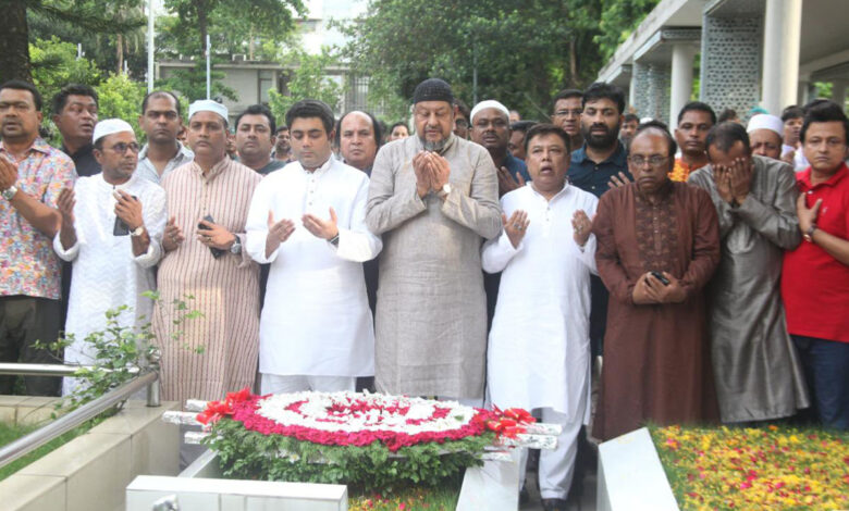 শুক্রবার (২৮ জুন) বিকেলে বনানী কবরস্থানে আওয়ামী যুবলীগের সাধারণ সম্পাদক মো. মাইনুল হোসেন খান নিখিলের নেতৃত্বে শ্রদ্ধা নিবেদন করেন।