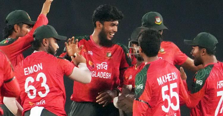 বাংলাদেশের শরিফুল ১৭ রানে ৩টি এবং শেখ মেহেদী ও তানজিম হাসান সাকিব নেন দুটি করে উইকেট।